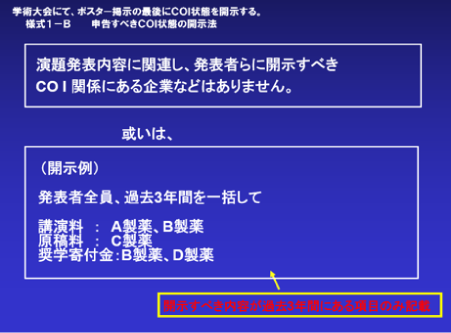 スライド2枚目に利益相反(COI)状態を記載し必ず開示してください。