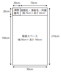 ・右上に幅 70cm ×高さ 20cm のサイズにて演題名・ 演者名・所属をご用意ください。
